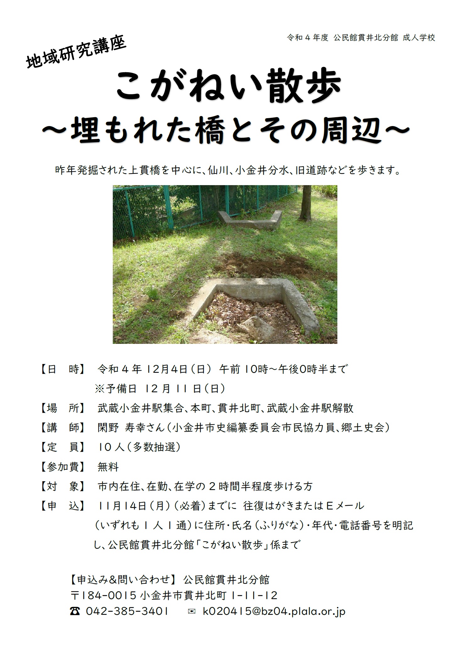 12月4日(日)地域研究「こがねい散歩~埋もれた橋とその周辺~」開催いたします。