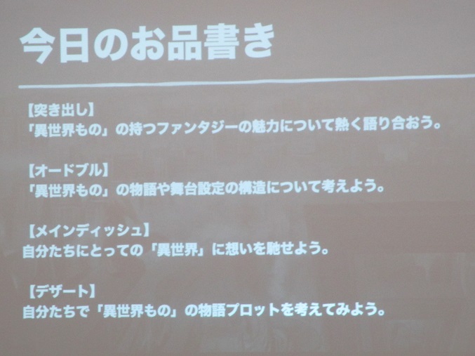 武蔵野大学インターン生2人も参加し、異世界アニメを探求。ファシリテーターは、社会人類学がご専門の小西公大先生話しやすい場を築きあげ、「好きなことに全力になれる時間」を参加者が共有することができました。