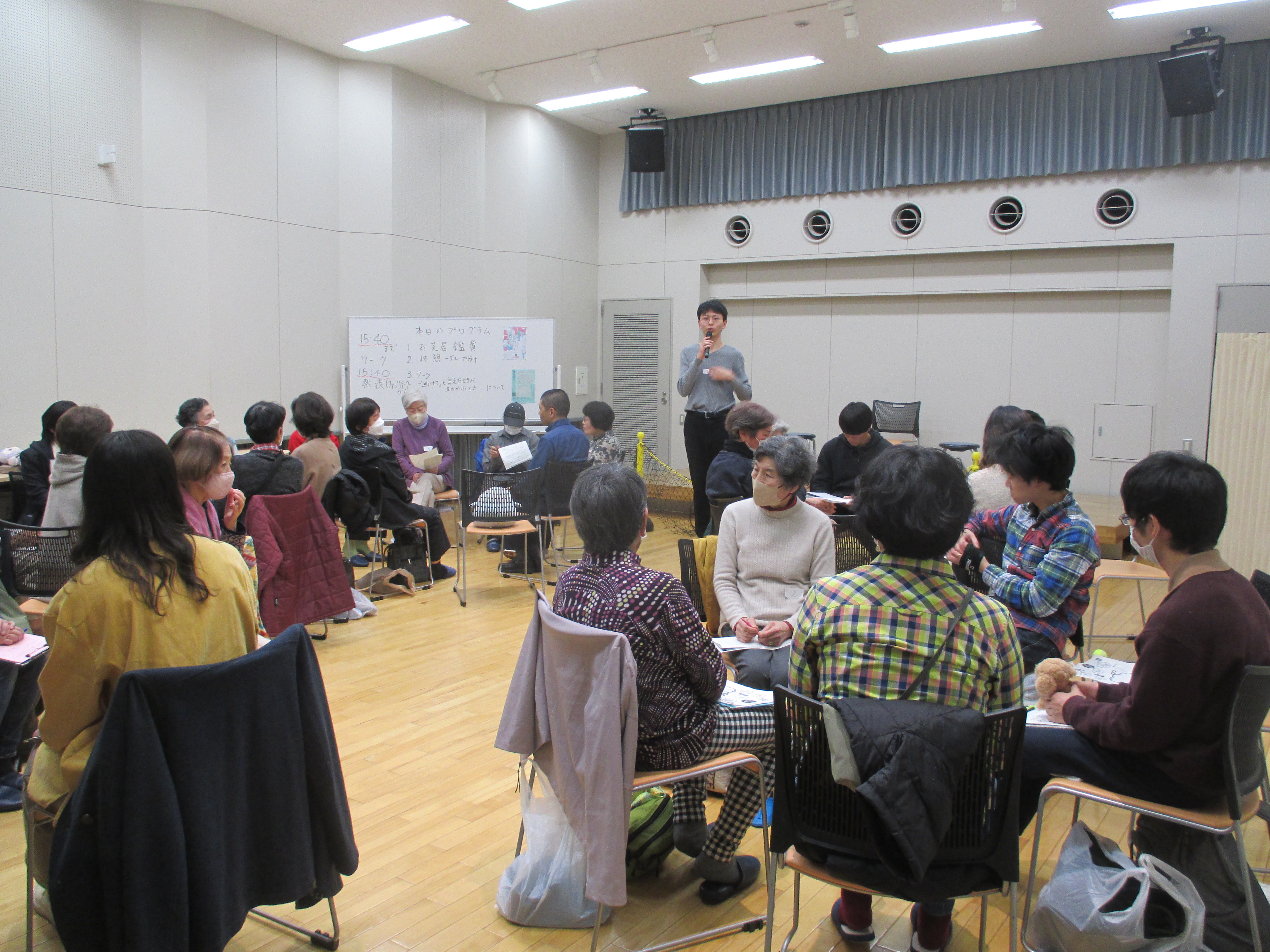 若者による自主講座 「お芝居『 さちどんどん 』を観て老後を考えよう!助けてと言えたときが、助かったとき」11月26日に開催いたしました。上演後、出演者がファシリテーターとなって観覧者と困りごとを自分事として一緒に考える対話を重ねました。「世代の違う方々との交流が貴重だった」と感想をいただきました。