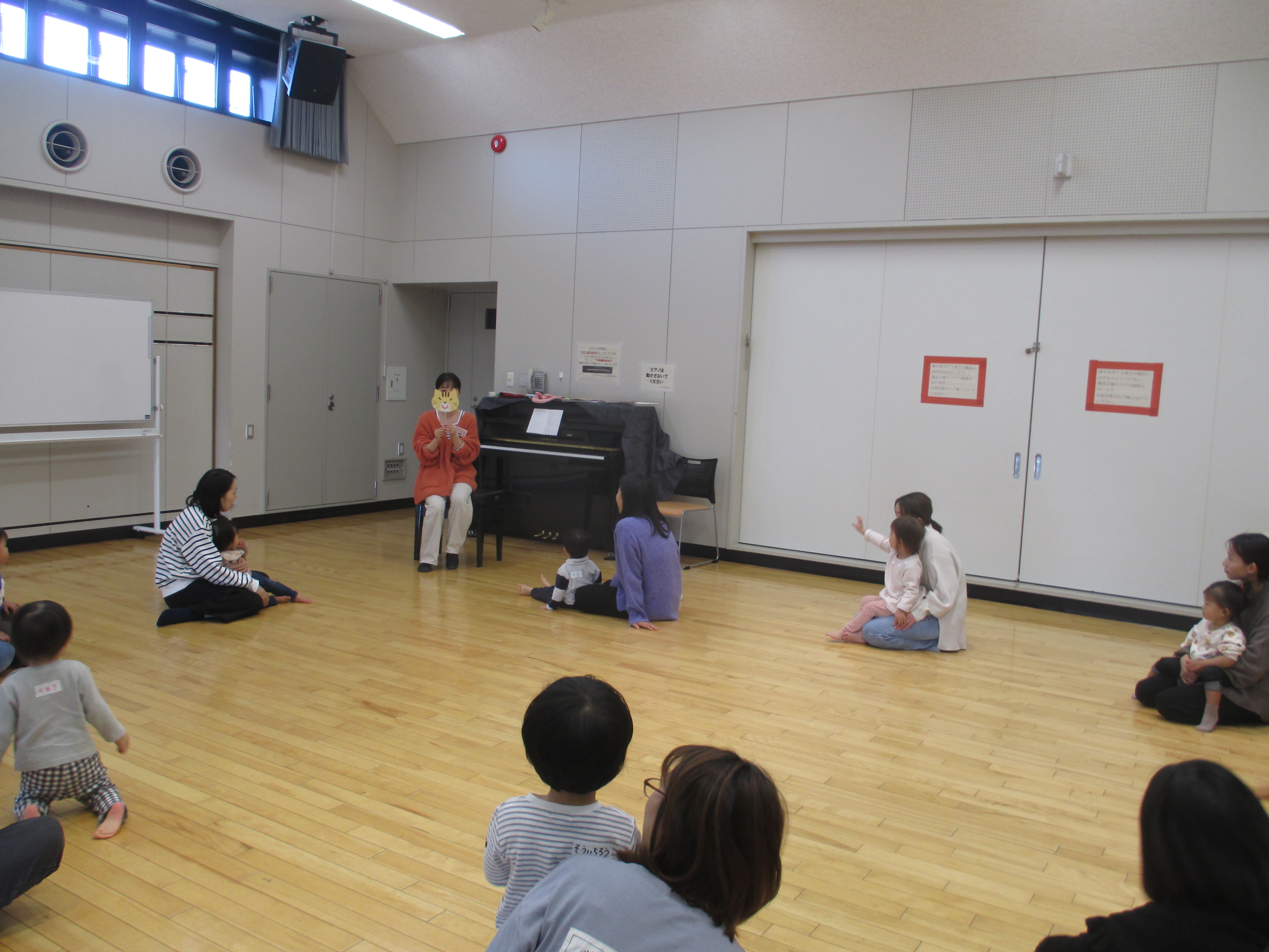 立川美歌 先生から、乳児クラスと幼児クラス、それぞれの発達に応じて学んでいます。第1回目は遊びを通して音楽を楽しみました。第2回目は音感やリズム感を楽しみます。