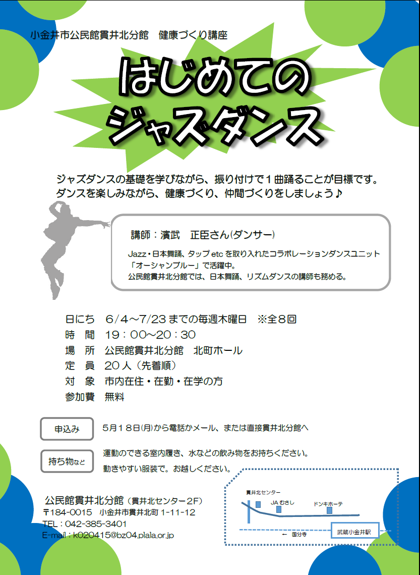 健康づくり講座「はじめてのジャズダンス」募集します。