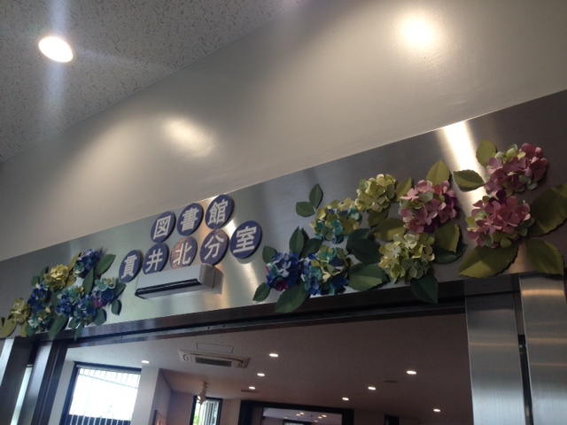 図書館の飾り付けが季節にあわせて変わりました♪