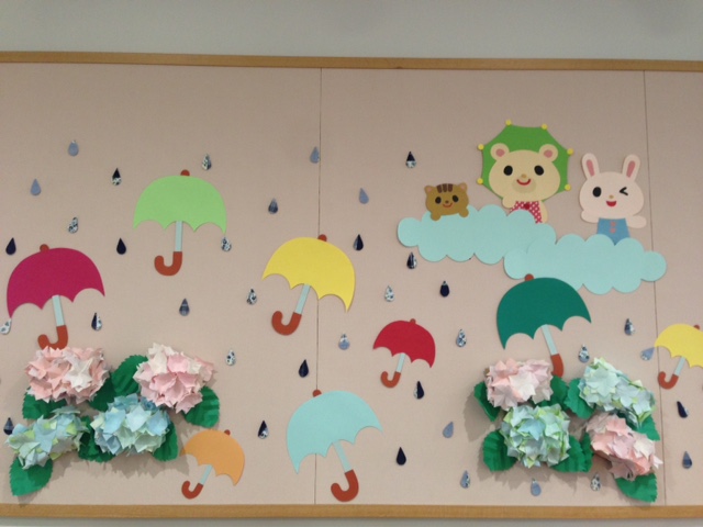 入口の“アジサイ”、館内の“傘とアジサイ”と、そして楽しみな“夏のモビール”です♪