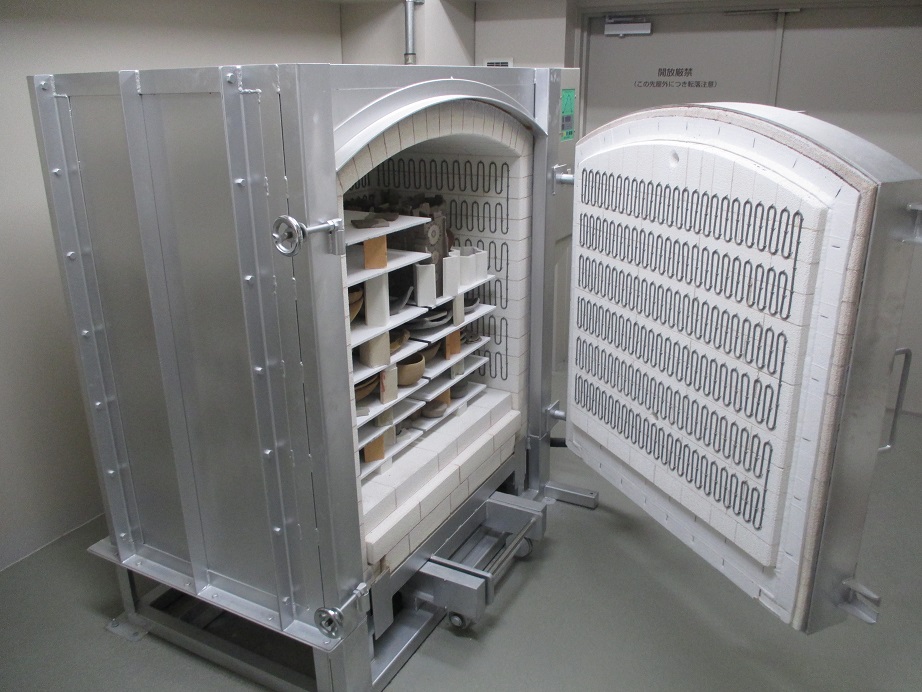 陶芸入門教室の作品は、自然乾燥を終えました。いよいよ電気窯で素焼きを行います。8時間800度かけて焼き上げます。作品が破損しないように、慎重に時間をかけて窯入れを行いました。電気窯の扉を開けた時、薄いレンガ色になっていることでしょう。