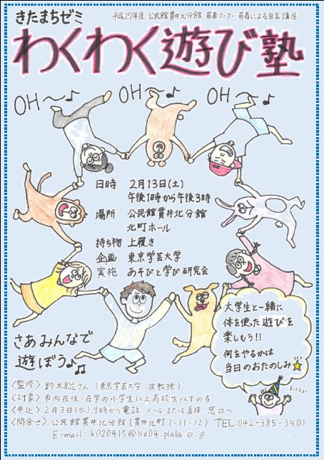 若者による自主講座「きたまちゼミ わくわく遊び塾」 募集を締め切らせていただきました。お申込みありがとうございました。