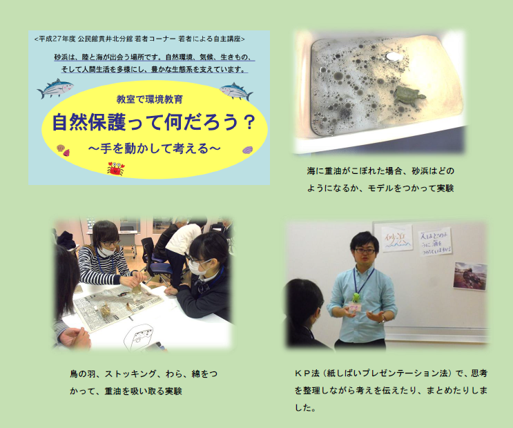 若者による自主講座「教室で環境教育 自然保護って何だろう? ~手を動かして考える~」自分で学びを創っていく力を体感しました。