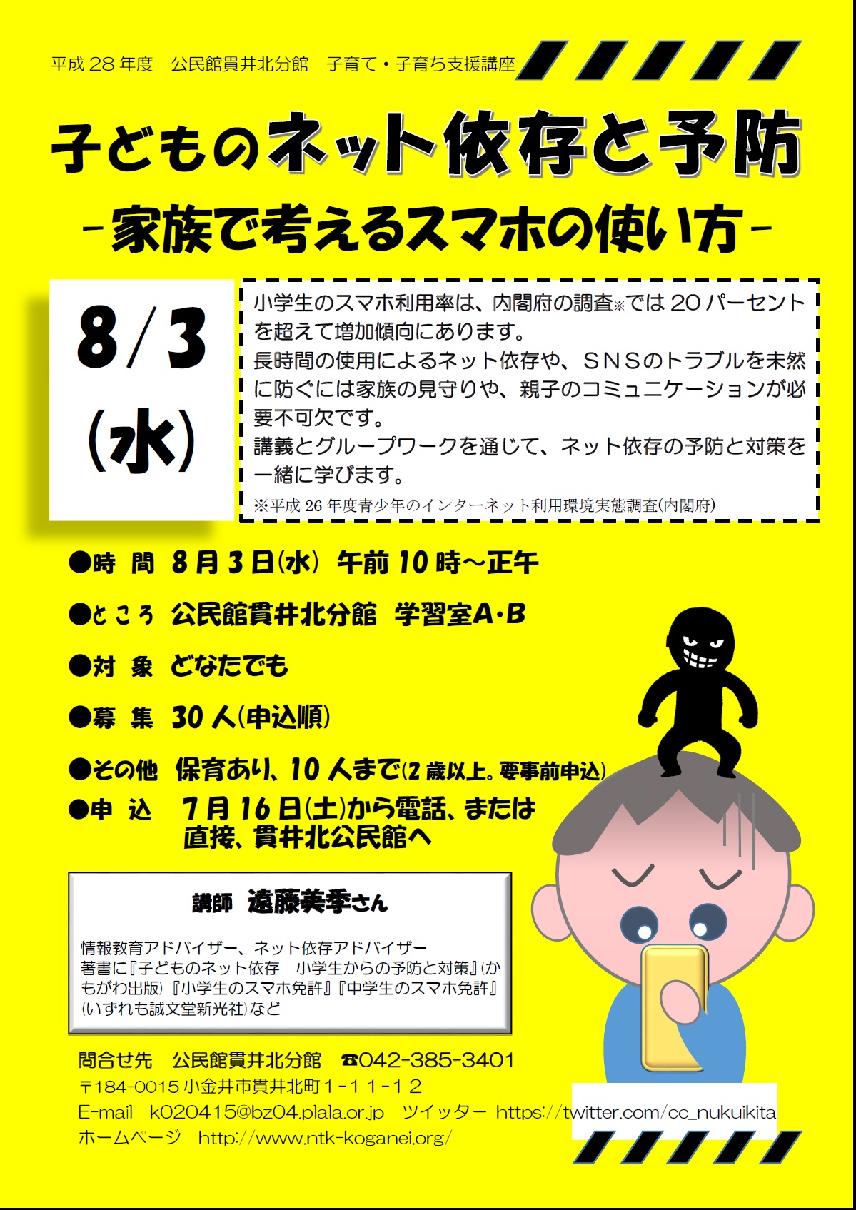 「子どものネット依存と予防 -家族で考えるスマホの使い方-」 終了いたしました。ご参加いただいた皆さま、誠にありがとうございました。