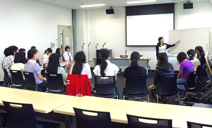 中学1年生から24歳までの20人が、声優体験をしました。午前は声優の日常訓練編で、腹式呼吸、発生、滑舌の練習、台本の読み方などを学びました。午後は声優の仕事編で、マイクの使い方やスタジオで気を付けることを学んだあと、アニメーション「天使の輪っか」のアフレコを体験しました。参加者は5つのチームに分かれて、アフレコを発表してくれました。講師の沙倉えみさんの熱意のこもった講座に、参加者も真剣に取り組んでいました。