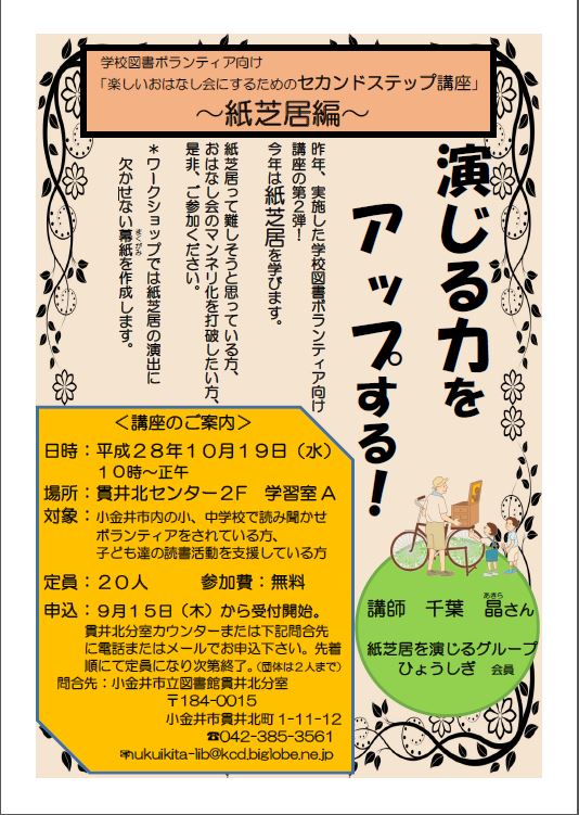 昨年実施した学校ボランティア向け講座の第2弾!今年は、「紙芝居」を学びます。