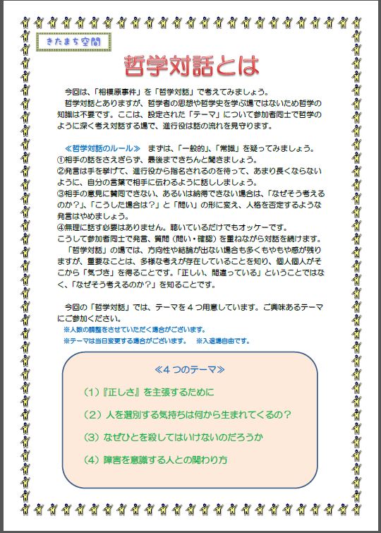 【開催告知】 「『選別』される社会」-相模原事件をとおして<問い・語る>哲学対話-