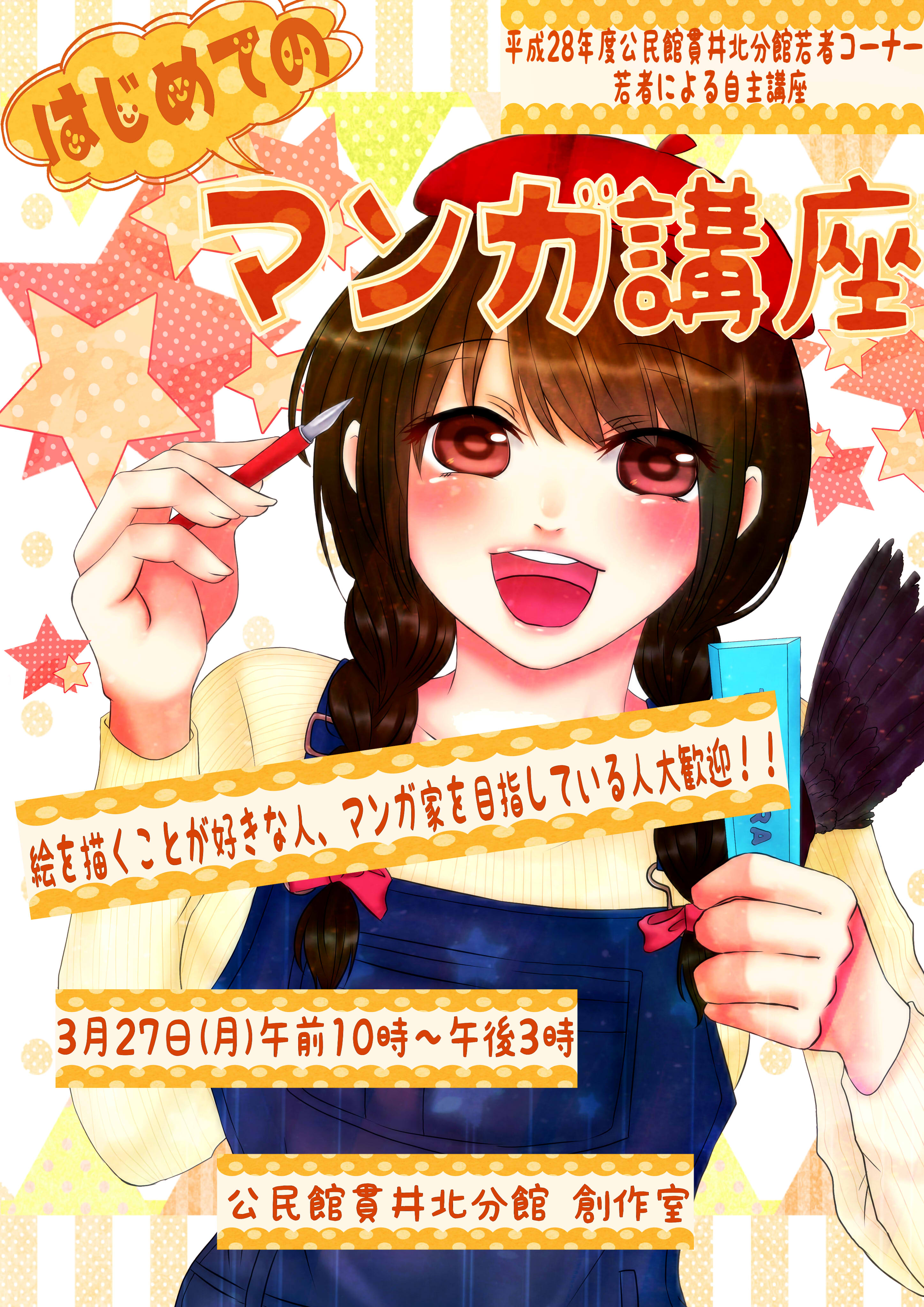 若者による自主講座「はじめてのマンガ講座」 参加のお申込みを締め切らせていただきました。お申込みいただいた皆さま、誠にありがとうございました。