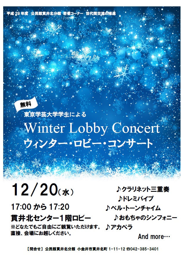 若者コーナー 世代間交流の推進 「ウィンター・ロビー・コンサート」開催いたしました。