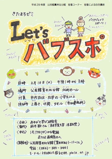 若者コーナー 若者による自主講座「Let'sバブスポ!新しいスポーツ バリアブレイクスポーツを楽しもう!」 開催いたしました。お申込みいただいた皆さま、誠にありがとうございました。