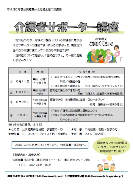 平成30年度「介護者サポーター講座」参加者お申込み受付中です。