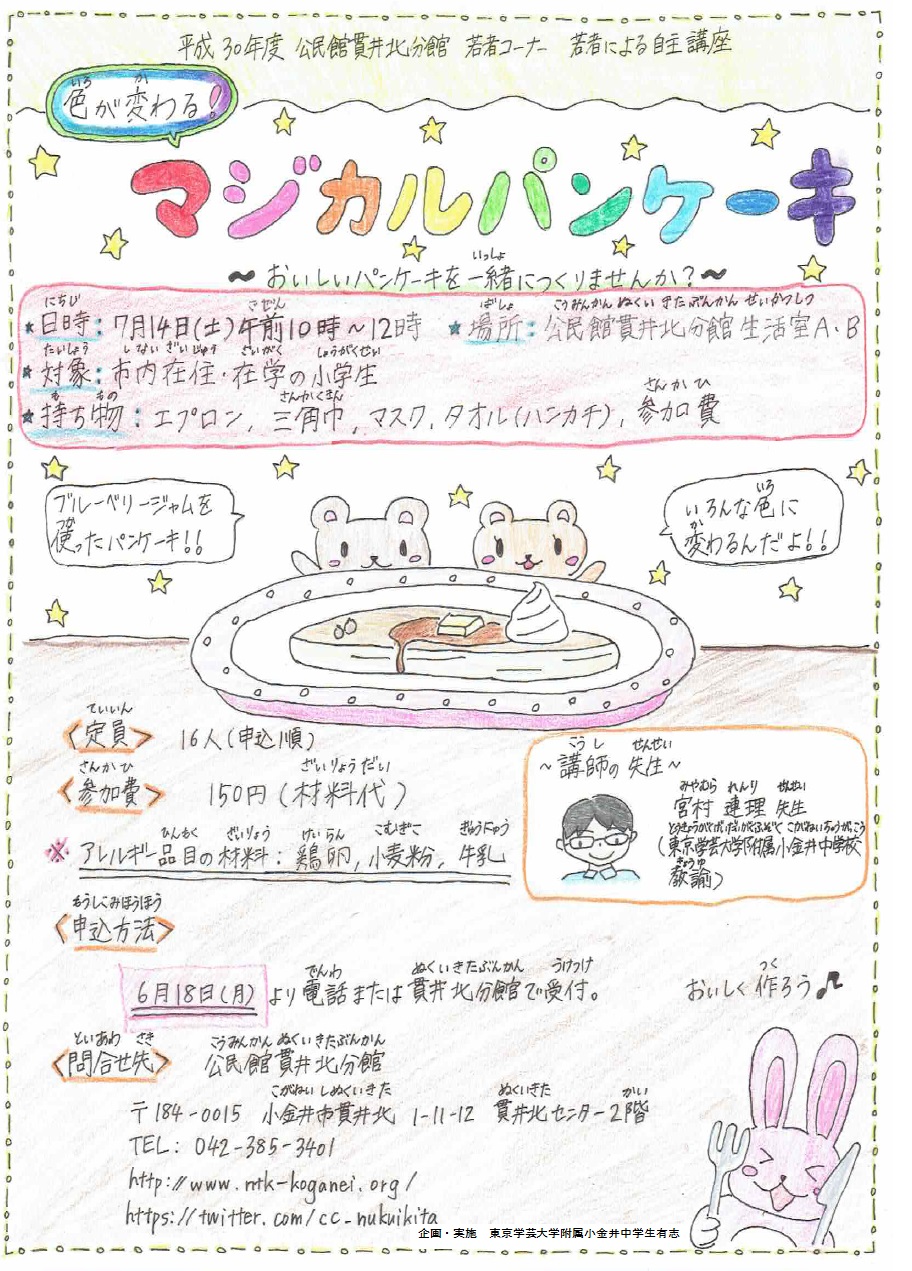 若者による自主講座「色が変わる!マジカルパンケーキ」 お申し込みは締め切らせていただきました。