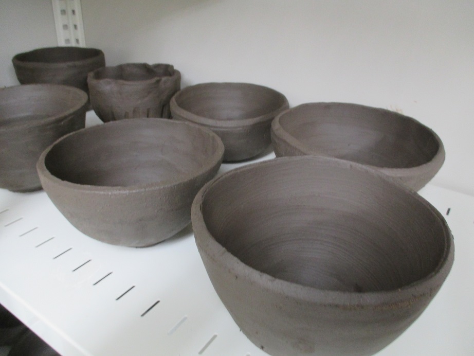 先週作ったお椀と湯呑みを仕上げました。ろくろをクルクルと回しながら、ご自身が使いやすい形、薄さに調整しました。これから、しっかりと自然乾燥させた後、先生と一緒に窯詰め作業、そして素焼きを行います!いよいよ土が陶芸品へと生まれ変わります!