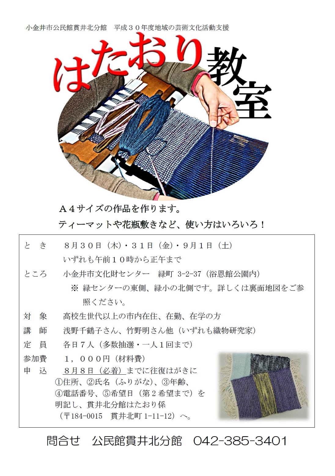 地域の芸術文化活動支援「はたおり教室」参加のお申込みを締め切らせていただきました。