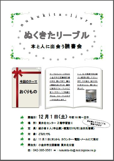12/1 ぬくきたリーブル(紹介型読書会)テーマは“おくりもの”です♪