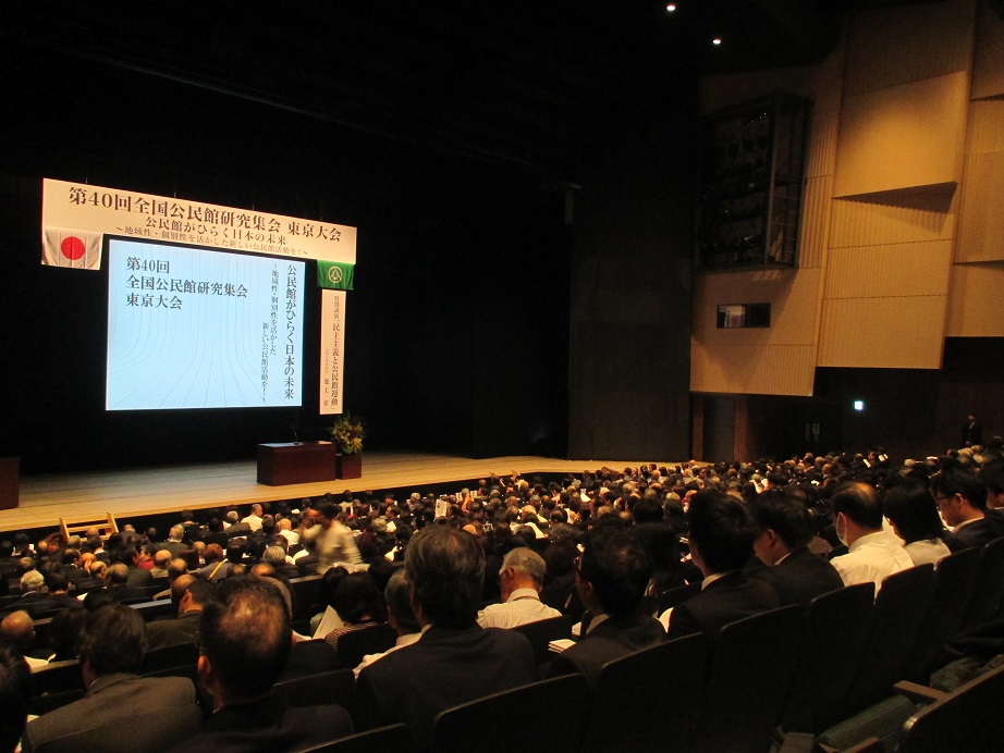全国から公民館に携わる職員が1,400名参加しました。池上彰氏による記念講演から始まりパネルディスカッション、事例報告など行いました。公民館運営の取組、課題、展望、解決策など夜まで話し合いました。
