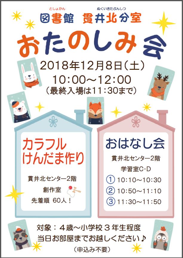 終了しました 【12/8 図書館貫井北分室おたのしみ会】☆カラフルけんだま作り ☆絵本の読み聞かせ