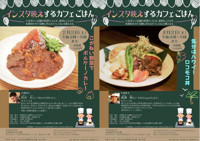 「インスタ映えするカフェごはん」(1回目2月2日、2回目3月2日)、参加者募集中です!