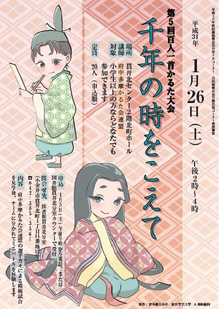 1/5日から、「百人一首かるた大会」と「カップルビブリオバトル大会」の参加者を募集開始します。
