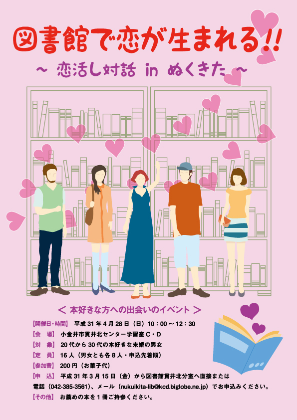 ※終了しました※4/28 ≪ 図書館で恋が生まれる!!~恋活し対話inぬくきた~ ≫