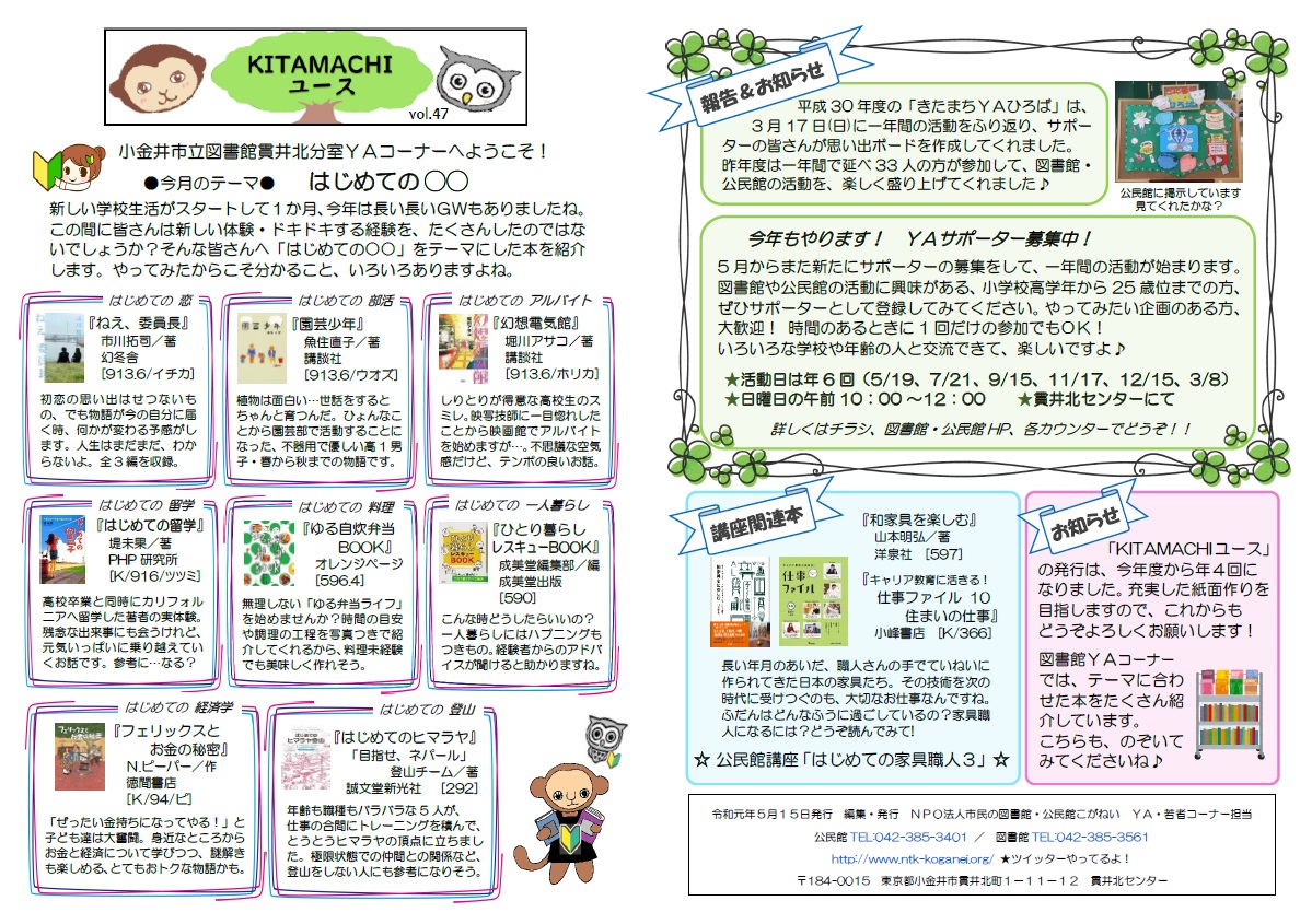 KITAMACHIユース Vol.47 テーマ 5月15日号 「はじめての〇〇」配布中です。