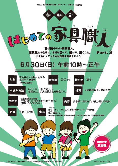 若者による自主講座「はじめての家具職人Part3 ~切る・組む・磨く~」 開催いたしました。