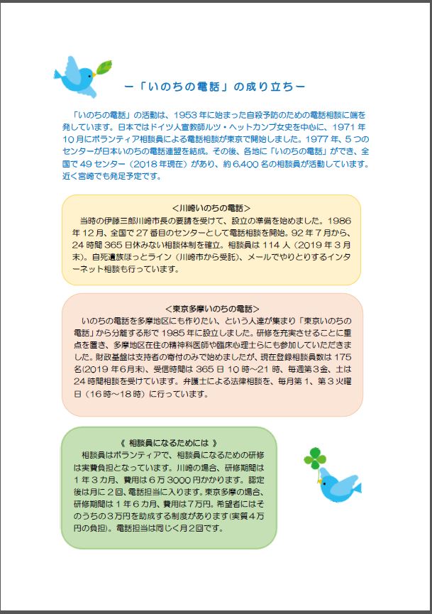 「川崎いのちの電話」は1986年設立、「東京多摩いのちの電話」は1985年設立です。