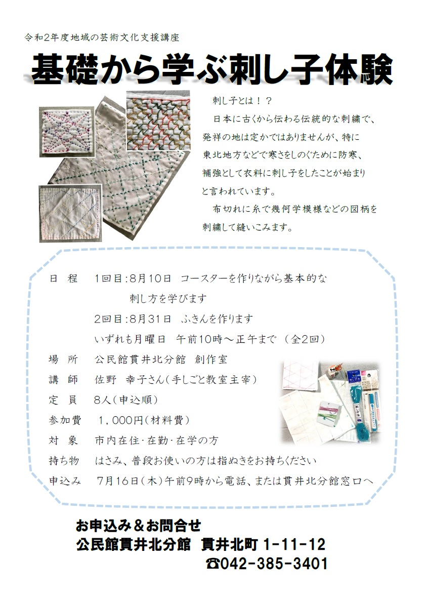 地域の芸術文化活動支援「基礎から学ぶ刺し子体験」