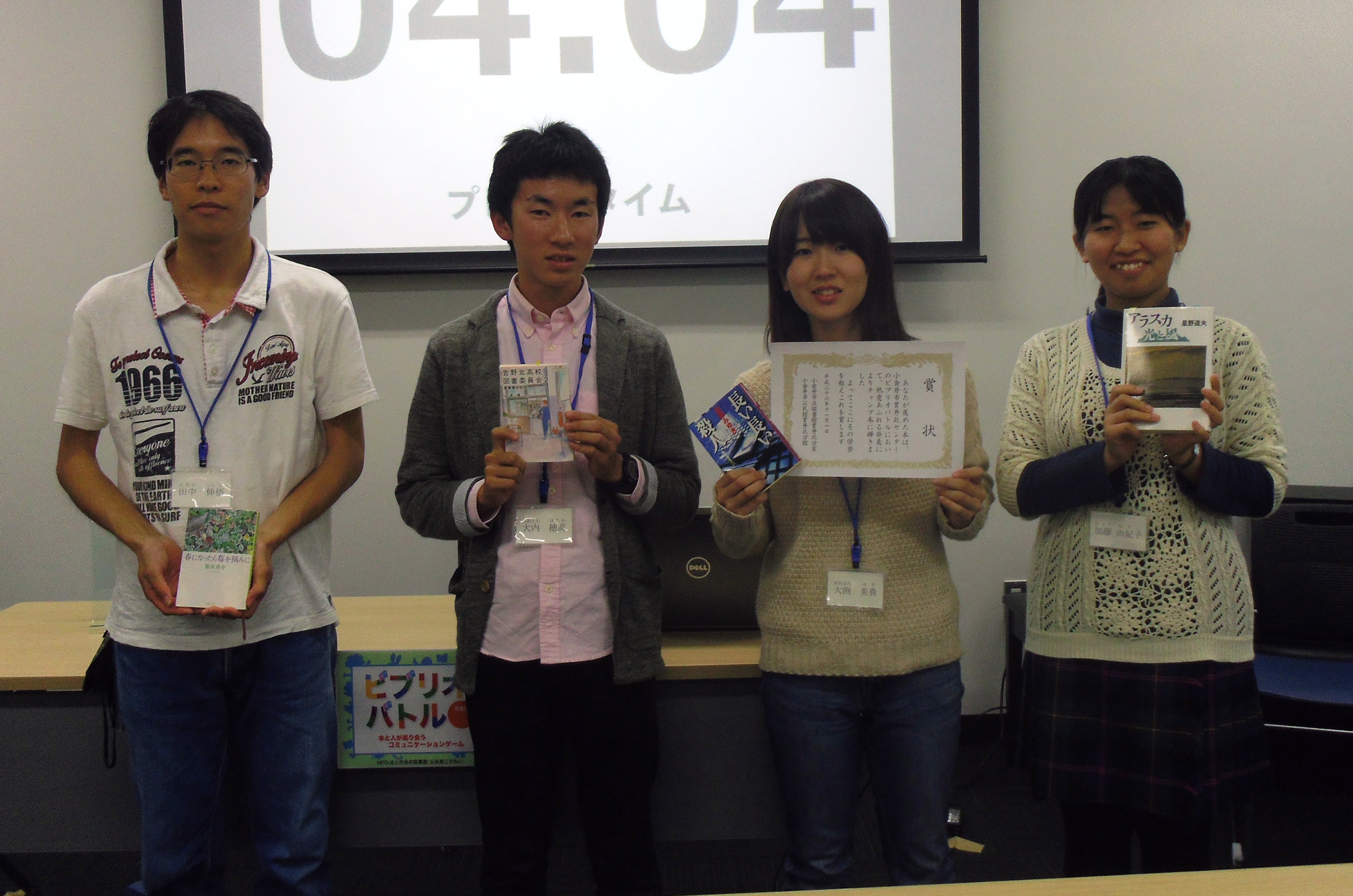 小金井市立図書館初のビブリオバトル本番、発表者8名(高校生4名、大学生4名)、観覧者31名にご参加いただき、盛況の中で終了しました。ご参加いただいた皆様、ありがとうございました。