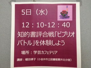 東京学芸大学 学芸カフェテリアで「ビブリオバトル」開催! 図書館貫井北分室が支援しました