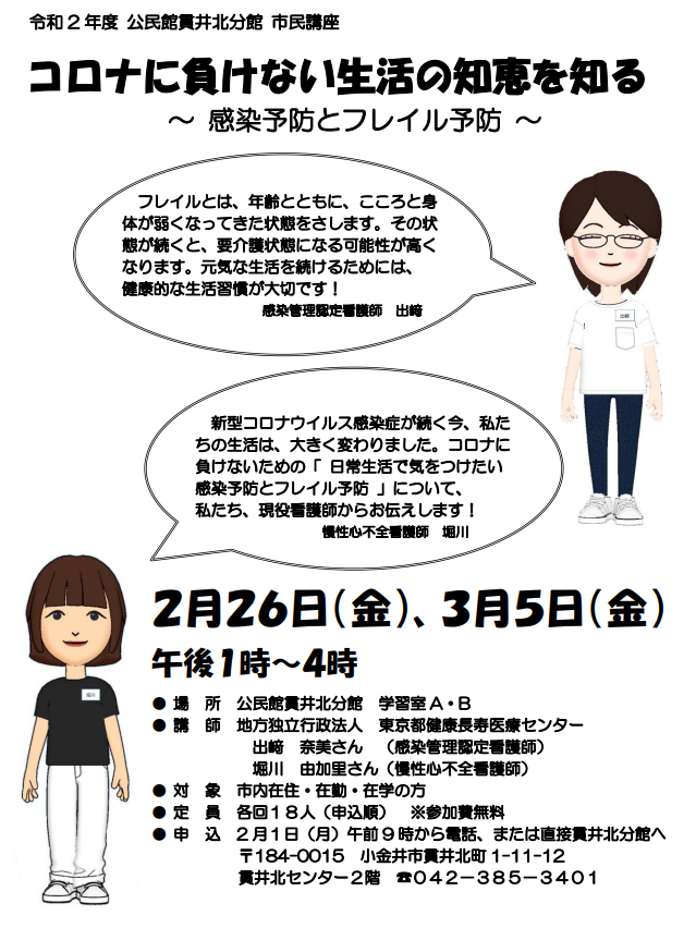 市民講座「コロナに負けない生活の知恵を知る~感染予防とフレイル予防~」お申込み受付中です。