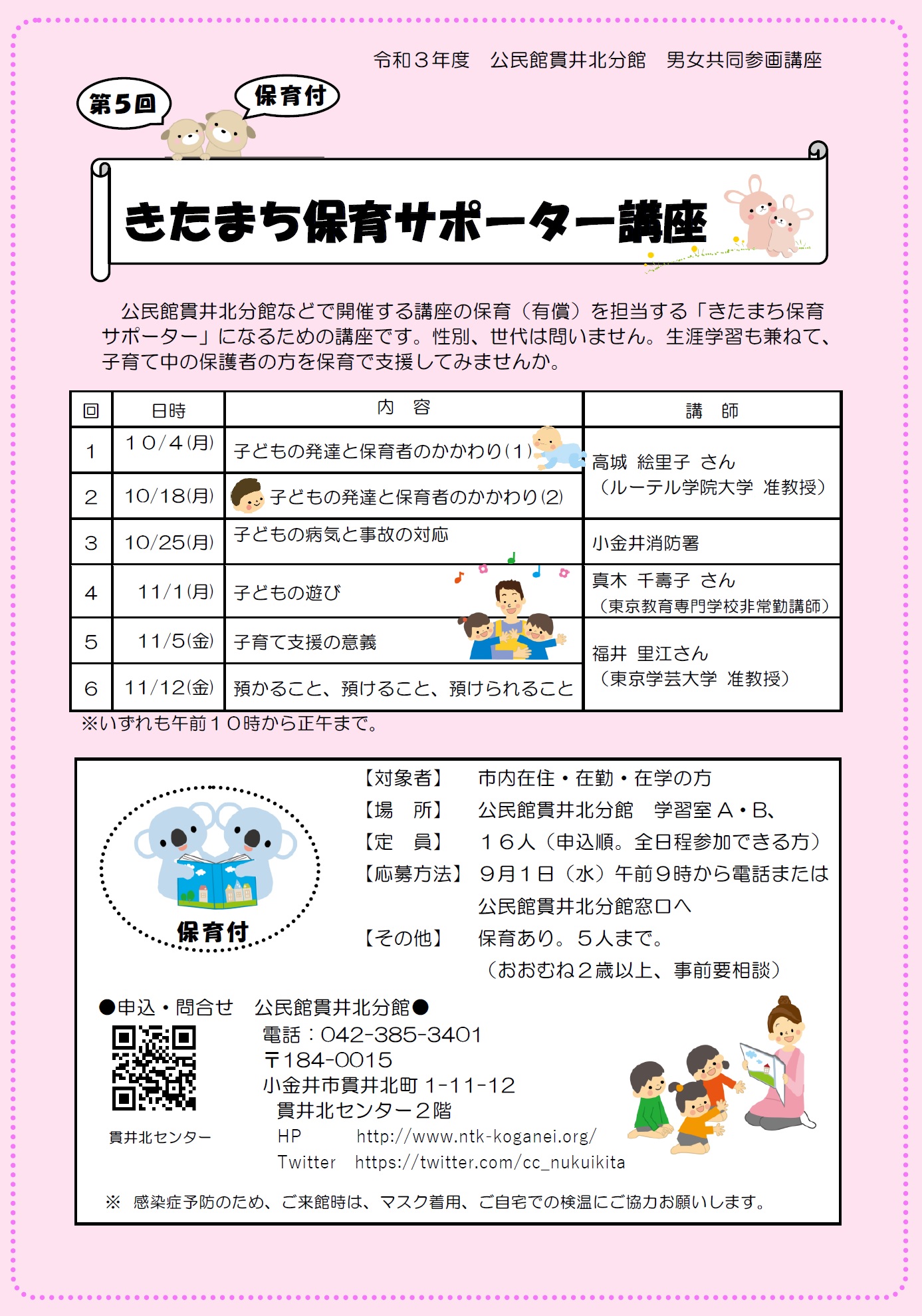 男女共同参画講座「きたまち保育サポーター講座」参加のお申込み受付中です。