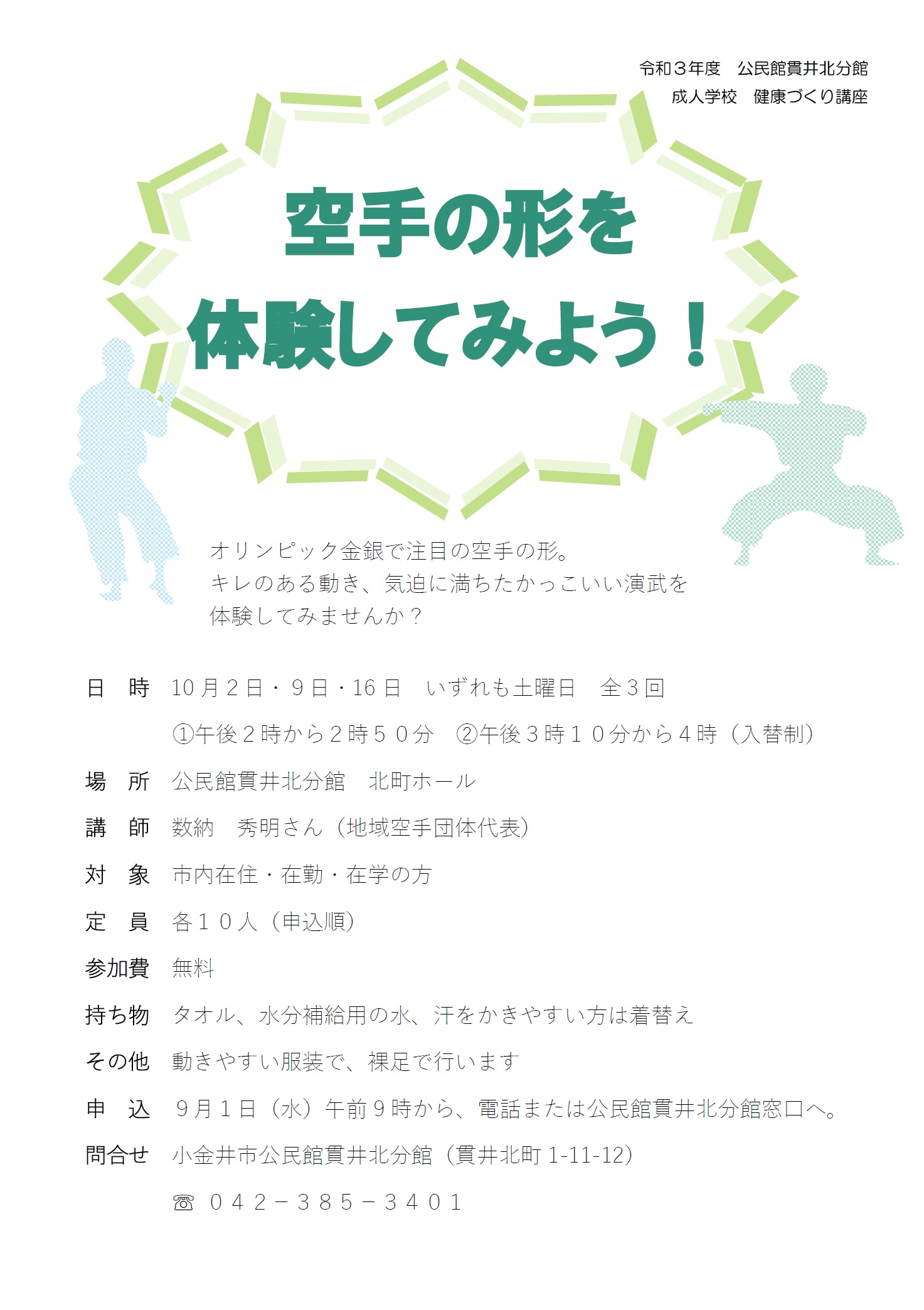 健康づくり講座「空手の形を体験してみよう」参加申し込み受付中です。