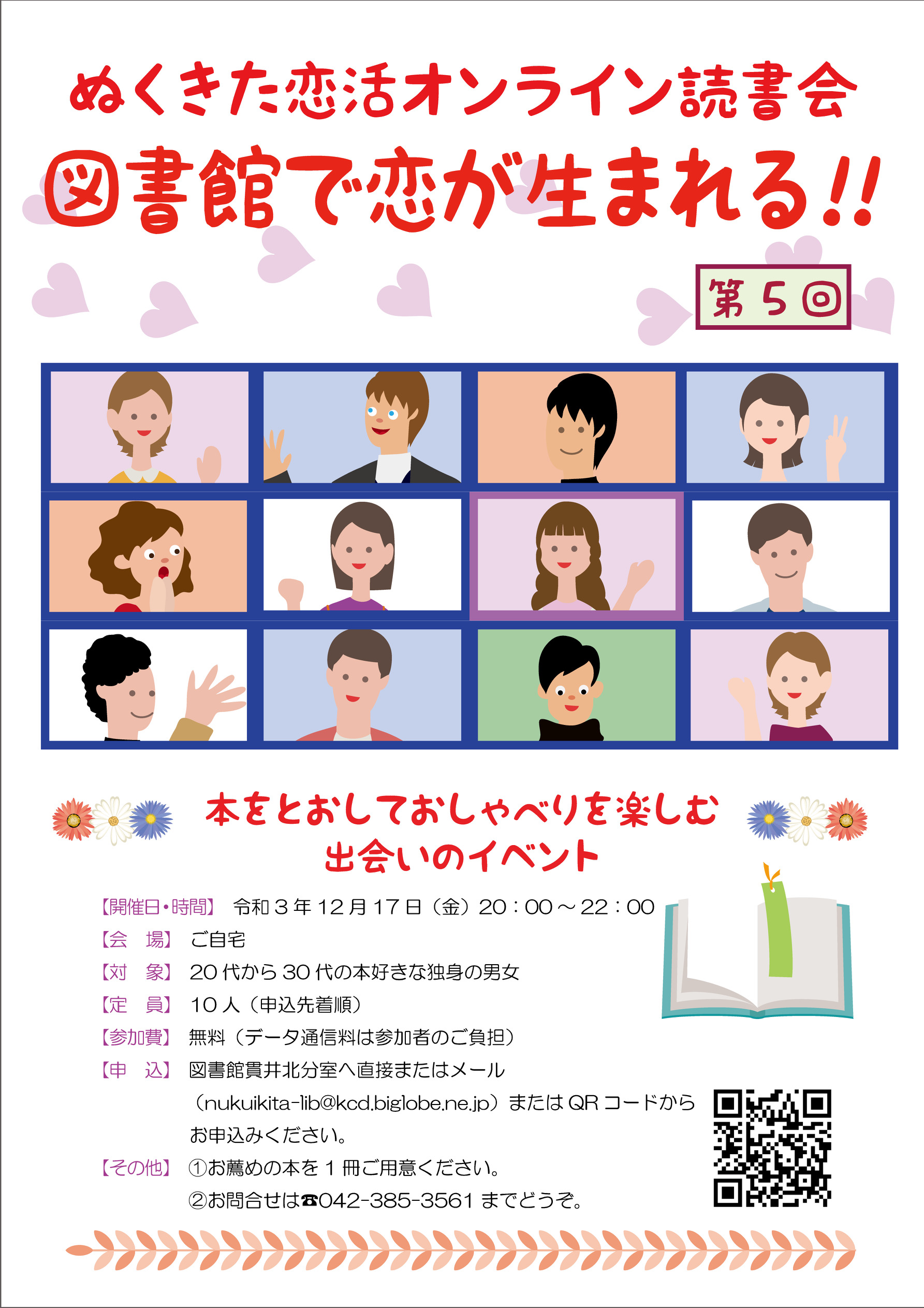 図書館貫井北分室が主催する、もう第5回開催を迎えた本をとおしての出会いの読書会→それが「ぬくきた恋活オンライン読書会」です。