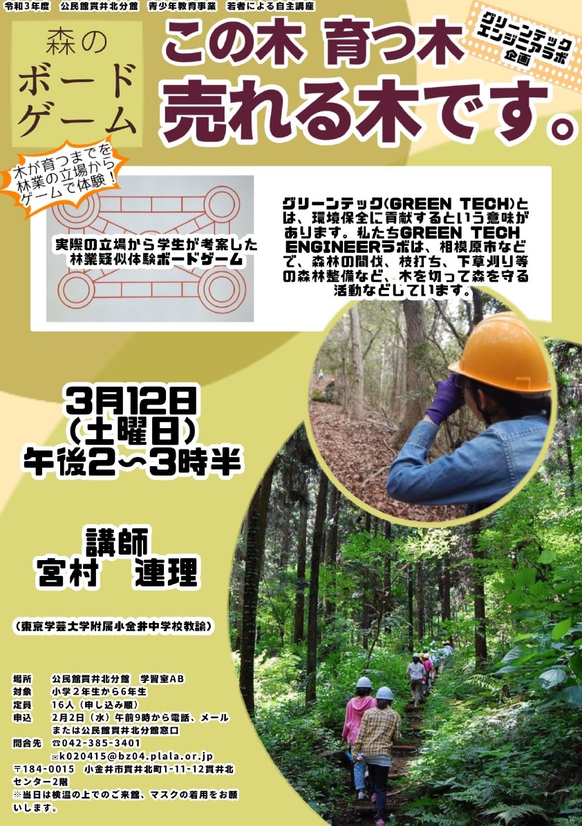 3月12日(土)開催「森のボードゲーム この木 育つ木 売れる木です」申込募集中です。(残り6人)