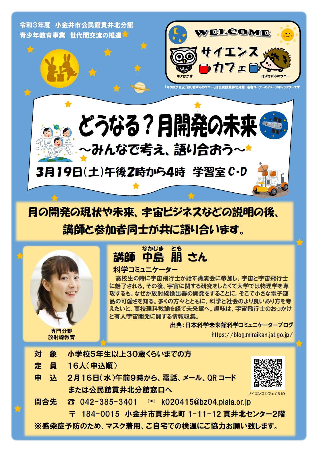 【募集中】3月19日(土)サイエンスカフェ「どうなる?月開発の未来」を開催します。